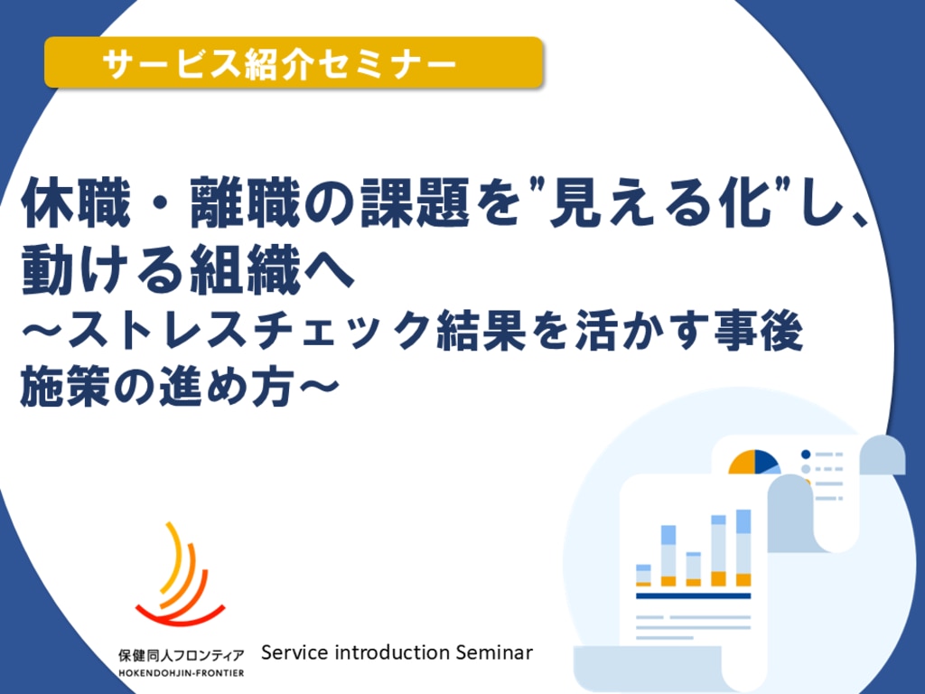 【ストレスチェックセミナー】休職・離職の課題を"見える化"し、動ける組織へ ~ストレスチェック結果を活かす事後施策の進め方~