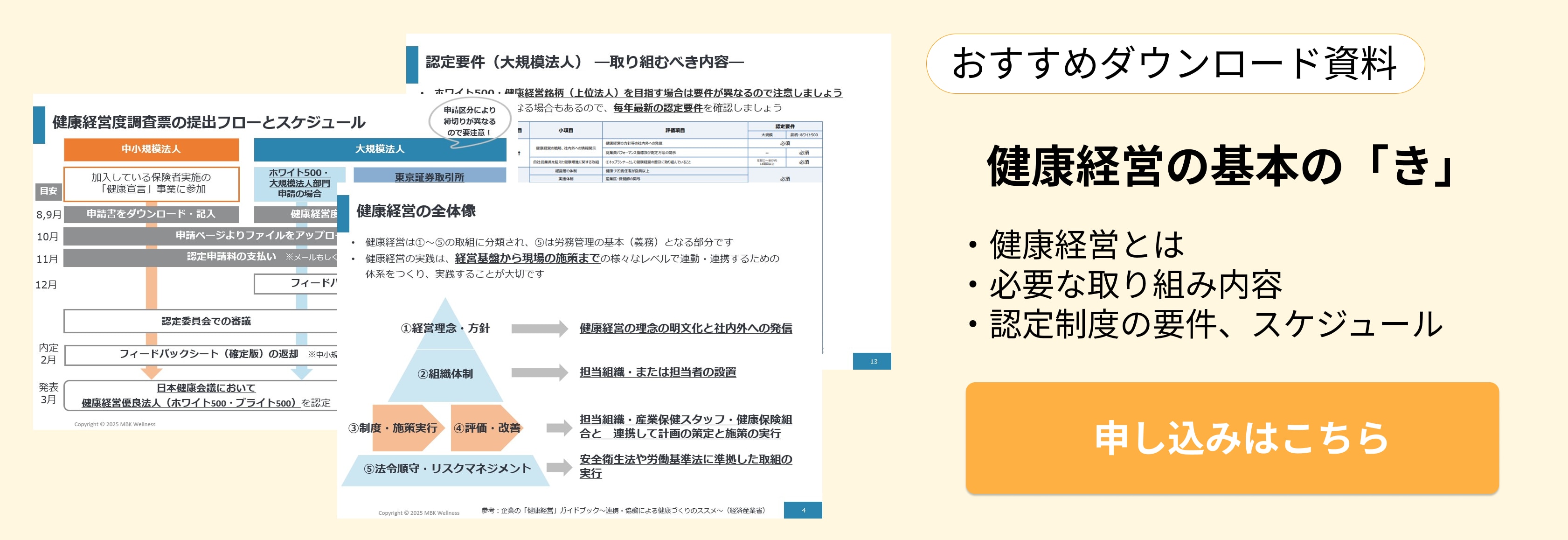 ◆おすすめの関連資料:健康経営推進に関する基本情報をまとめました!