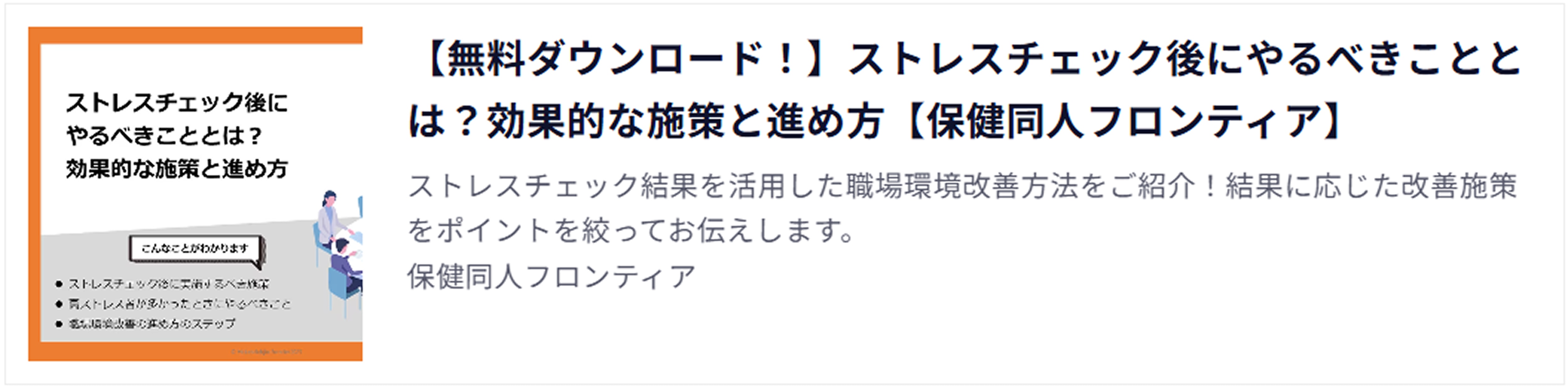 ◆おすすめの関連資料:効果的なストレスチェック結果の活用方法をご紹介
