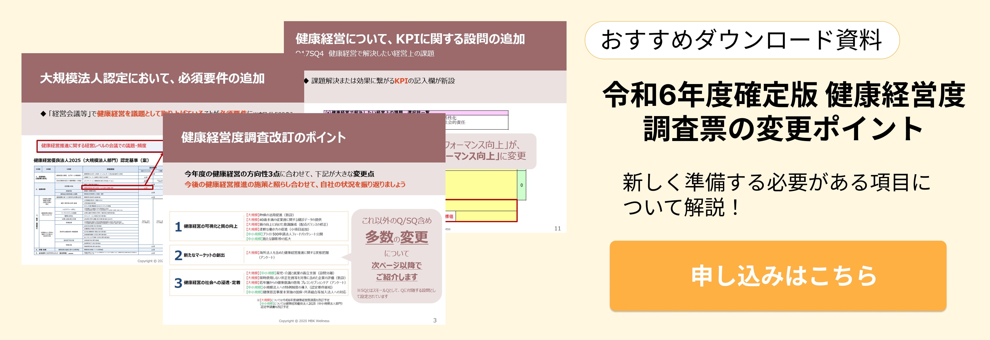 これから健康経営優良法人の認定を目指していくうえで、確実におさえておきたい必須項目や最新の変更点などを知りたい方も多いのではないでしょうか。